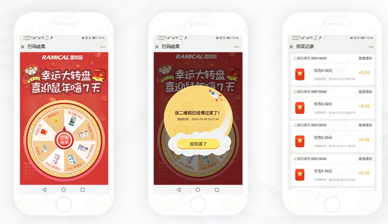 见的营销互动类型有扫码发红包、扫码大转盘、扫码领取实物奖品、扫码领取积分等。